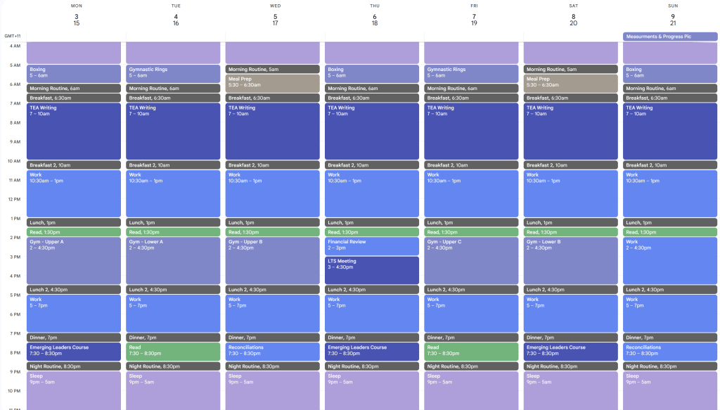 Once I had planned everything I needed to do for my big goals, I planned the rest of my life around that. I planned when I ate, when I slept and for how long, when I called my parents, everything.